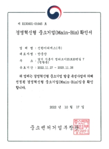 ▶ Certification as a Promising Small and Medium Enterprise in Gyeonggi-do
